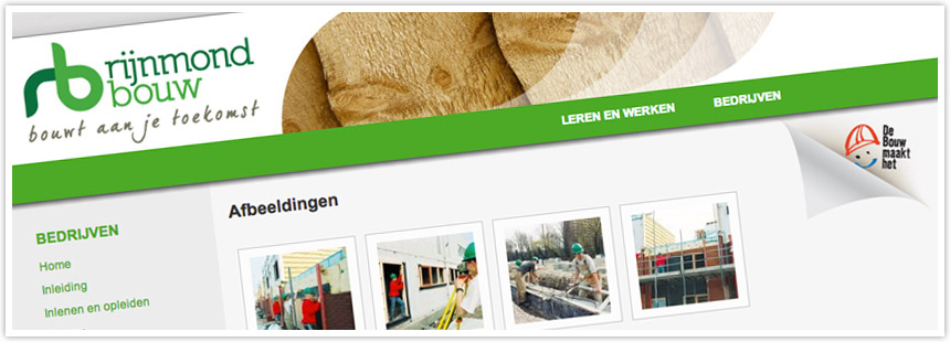 Dankzij het eigentijdse en professionele herontwerp van Nathalie voor de huisstijl van Rijnmond Bouw worden de communicatie doelstellingen nu goed ondersteund. Door het gebruik van fris groen binnen de huisstijl en de toevoeging van een verhelderende punchline onder het logo wordt het nieuwe Rijnmond Bouw nu goed vertegenwoordigd. Samen met Nathalie hebben we gewerkt aan een nieuwe frisse uitstraling. En dat mocht ook wel na ruim 30 jaar teren op "het oude vertrouwde". Rijnmond-Bouw (bouwopleidingen en detachering) is een bedrijf voor jonge aankomende vakmensen in de bouw en dat mag je anno 2014 best uitstralen. Nathalie heeft dat uitstekend aangevoeld en ons een mooi nieuw gezicht gegeven." Wolf van Pelt, directeur Rijnmond Bouw |